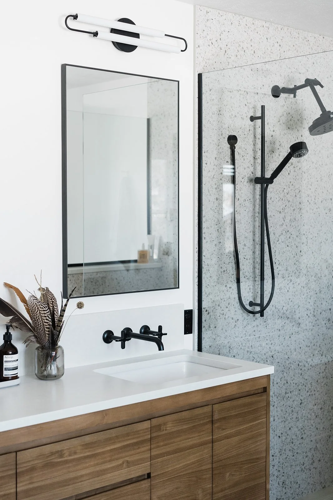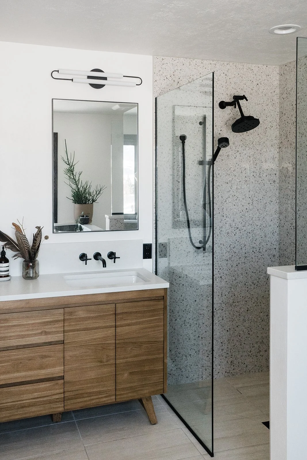 Primary Bathroom Remodel in Bozeman A primary bathroom remodel to modernize it. All Architecture + Interior Design done by Viajera Designs. Photography: Peach Meets Pine